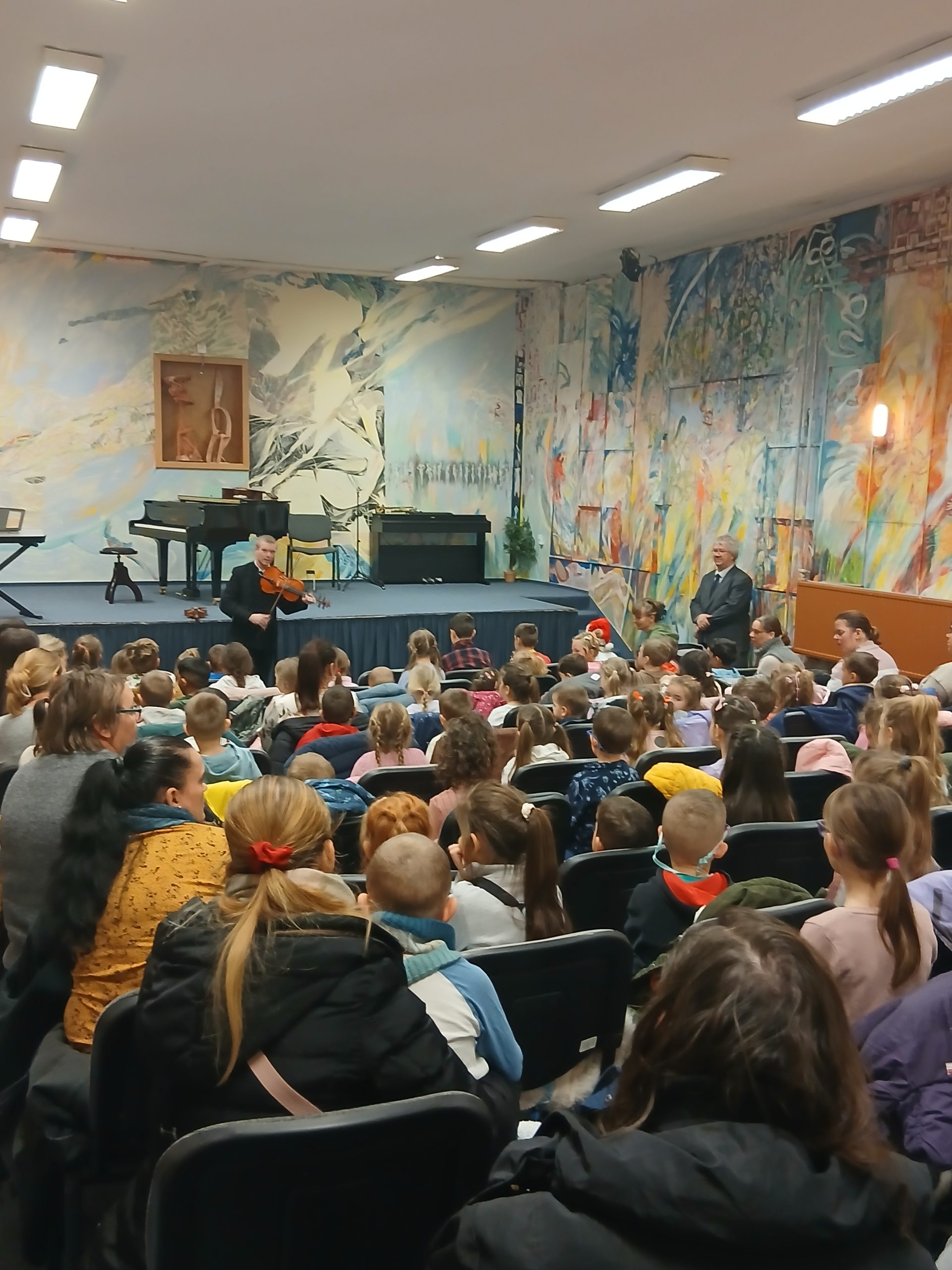 Hagyományainknak megfelelően 2025. december 9-én megrendeztük iskolánkban az „Ovis Mikulás” elnevezésű hangszerbemutató koncertet, melyen megtelt hangversenytermünk, ugyanis az Örkényi Manócska Óvoda közel száz kis óvodása és pedagógusai látogattak el hozzánk. A műsor során a résztvevők megismerkedtek az intézményben oktatott hangszerekkel, valamint növendékeink és zenetanáraink közreműködésével hangolódhattak a karácsonyi ünnepekre. A zenehallgatás mellett aktívan énekeltek, mondókáztak is a résztvevők. Egy jó hangulatú és vidám rendezvény zajlott a zeneiskola falai között, melyről néhány fotó itt megtekinthető: